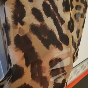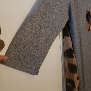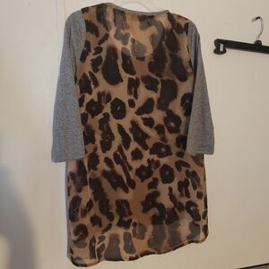 Soft Surroundings Long Line Tunic Top 3/4 Sleeve Gray Front Sheer Leopard Print Back Sz S