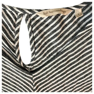 Made of a blend of linen and cotton, this tunic top is both soft and durable. The gray striped design and black color make it easy to pair with any outfit. This top is available in size large and is perfect for women who want a regular fit. Get ready to turn heads with this stylish and comfortable blouse from Soft Surroundings.