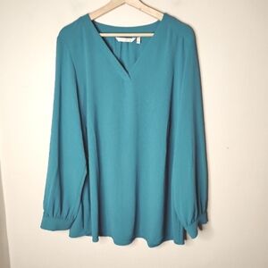 Soft Surroundings top, teal blouse, dragonfly tunic, flowy long sleeve top, v-neck shirt, soft surroundings Liza, women’s 1X top, relaxed fit tunic, casual boho blouse, teal blue shirt, workwear top, travel friendly, minimalist top, classic wardrobe