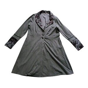 Preowned Soft Surroundings long jacket Women's size medium. Grandeur. Duster. Gray and purple. Embroidered. Boho bohemian lagenlook. Beaded. Buttons. Pockets.