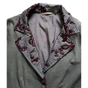 Soft Surroundings Long Jacket Womens Medium Gray Purple Grandeur Embroidery Boho