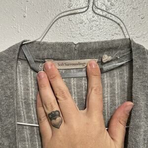 Soft Surroundings Long Line Duster Open Front Knit Cardigan Sweater Gray Size L