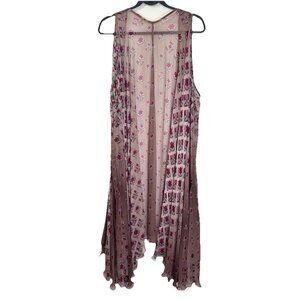 Soft Surroundings Long Maxi Vest Womens L/XL Purple Plum Ombré Flowy Boho Sheer