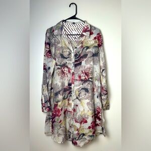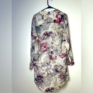 Soft Surroundings Long Sleeve Button Front Floral Print Long Tunic Blouse Size L