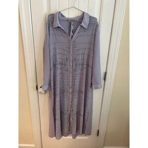 Soft Surroundings Long Sleeve Lavender Button-Down Embroidered Maxi Dress Sx 2X