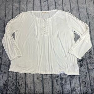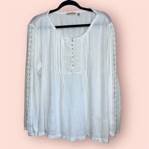 Soft Surroundings Long Sleeve White Blouse With Lace Detail Size XL
