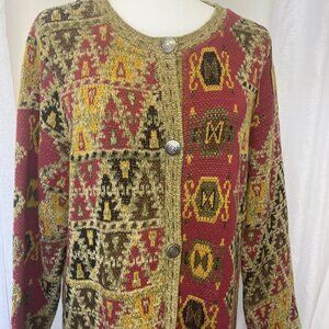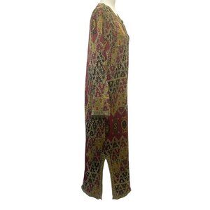 Soft Surroundings Long Sweater Tapestry Jacket Robe Size MED Art Wear Boho Heavy