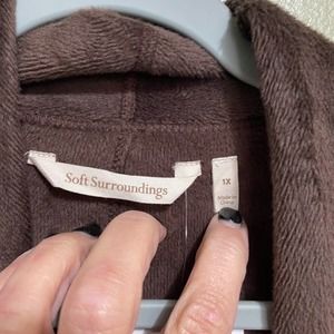 NWT Soft Surroundings vest in a size 1X. Vest is chocolate brown and incredibly soft. Inside of vest is a brushed faux fur and outside is smooth. Two front open pockets