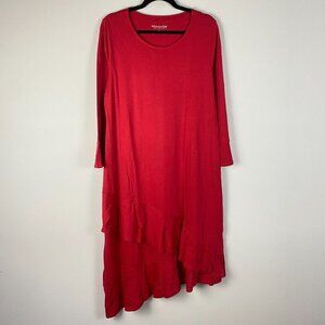 Soft Surroundings Lucia Flounce Red Dress Size L Ruffle Tiered Asymmetrical Hem