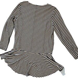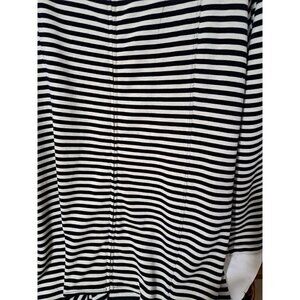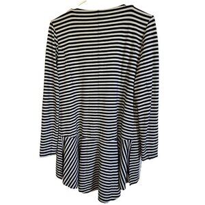 Soft Surroundings M Calista Black/Gray Stripe Zip Front Tunic Hi-Lo Hem FLAW!