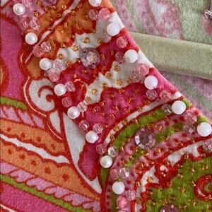 Soft Surroundings beaded floral print slip on top. Very nice top with sequins and pearl beads. Excellent condition. Armpit to armpit measures 19 inches. 28 inches long. Cotton blend.