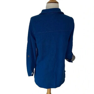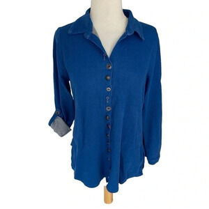 Soft Surroundings M blue waffle knit rolled sleeves button down shacket top