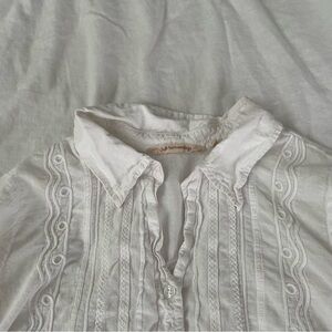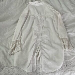 Soft Surroundings MEDIUM White Bell Sleeve Boho Blouse Top lace