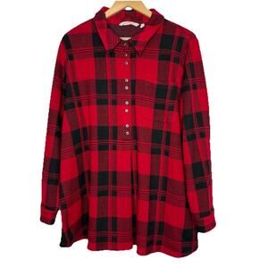 Soft Surroundings Mad About Plaid Red Buffalo Check Tunic Top Womens XL Boho