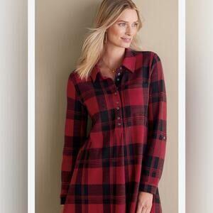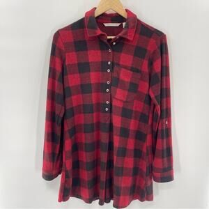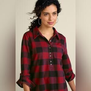 Soft Surroundings Mad About Plaid Rio Red Buffalo Check Comfy Roll-Tab Tunic XS