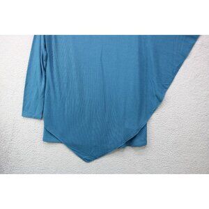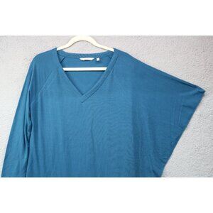 This is a Soft Surroundings Madeline Tunic Top that is a size Medium. It has a cape overlay on the left side. It is 61% Polyester, 35% Viscose, and 4% Spandex. Laying flat, it measures: Armpit to armpit-20.5" and the length is 29.5". It is a pretty turquoise blue and in great condition.