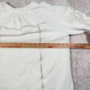 Soft Surroundings Magnolia Gauze Top Blouse Size L Ivory Crocheted Trim Lined