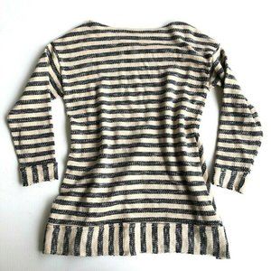 Soft Surroundings "Marina" Pullover Nautical Striped Boat Neck Sweater. Beige and dark charcoal grey striped. Size medium. Raw hem edging. Great condition. No flaws.