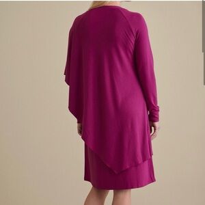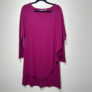 Soft Surroundings Dress Womens Large Purple Plum V-Neck Long Sleeve Marla Drape Jersey Knit Stretch.