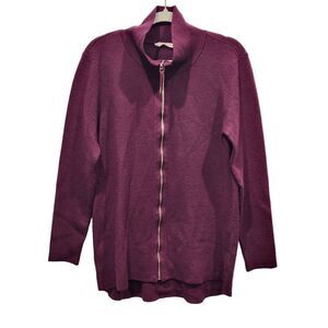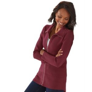 Soft Surroundings Maroon Brooklyn Zip Sweater Cardigan Jacket, L