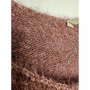 Soft Surroundings Mauve Pink Fuzzy Soft Eyelash Metallic Sweater Top Size Large