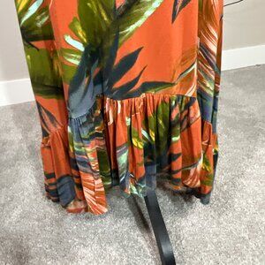 Soft Surroundings Maxi Dress Knit Ruffle Hem Fabiana Tropical Hi-Low Sleeveless