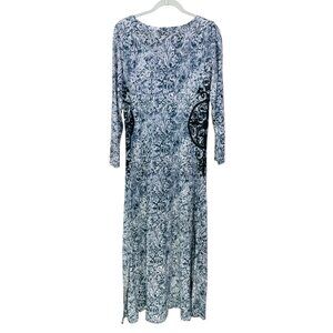 Soft Surroundings Maxi Dress SMALL Jersey Paisley Stretch Long Sleeve Gray Boho