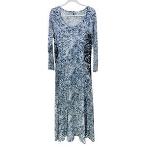 Soft Surroundings Maxi Dress SMALL Jersey Paisley Stretch Long Sleeve Gray Boho Cotton/Modal Pull On