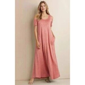 Soft Surroundings Maxi Dress Womens Medium Cold Shoulder Pockets Travel Vacation