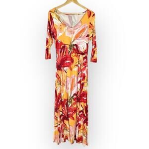 Soft Surroundings Maxi Dress Women's Small Yellow Red Floral A-Line 3/4 Sleeves