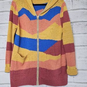Soft Surroundings Medium Reverie Multicolor Hooded Zip-Front Cardigan Sweater