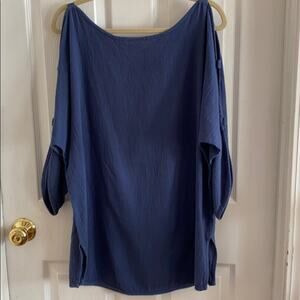 Soft surroundings medium blue top. Scoop-neck. Cut out sleeves. Armpit to armpit 23 inches. 32 inches long. Like new. 100% cotton.