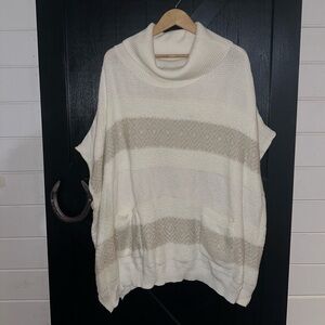 Soft Surroundings Meribel Striped Cowl Neck Poncho Sweater Soft Cozy Oversized