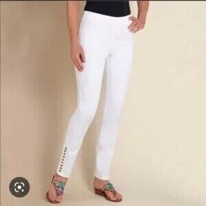 Soft Surroundings Women's Metro White Jeggings – Size Petite Small (6-8) with Ankle Button Accents