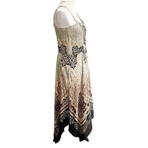 Soft Surroundings Midi Knit Smocked Dress Petite XL Asymmetrical Hem Multicolor