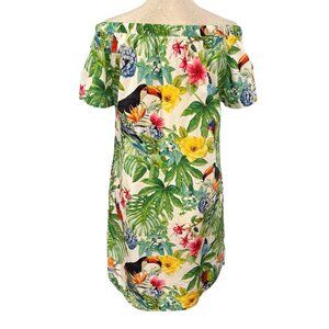 Soft Surroundings Mini Dress PS Off Shoulder Toucan Tropical Resort Vacation