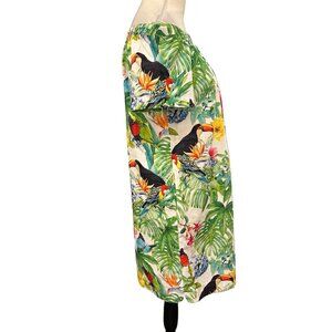 Soft Surroundings Mini Dress PS Off Shoulder Toucan Tropical Resort Vacation Beach Cruise