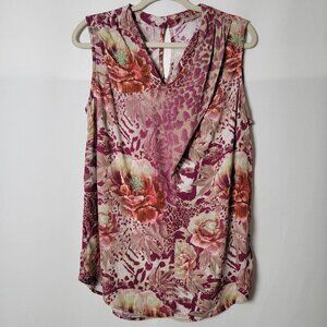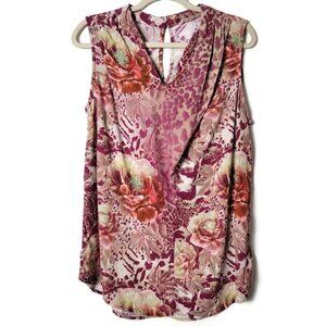 Soft Surroundings Mixed Floral Animal Print Boho Beachy Sleeveless Top Medium