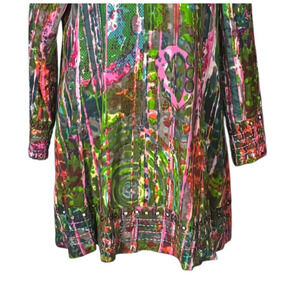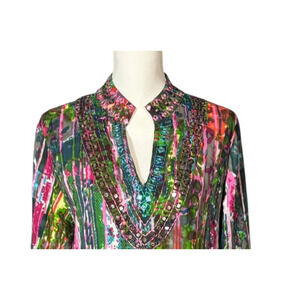Soft Surroundings Mosaic Tunic Size Large Green Boho Artsy Embroidery Tie Dye