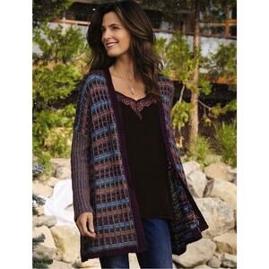 Soft Surroundings Multi-Color Textured Eirene Open Front Cardigan Sweater - L/XL