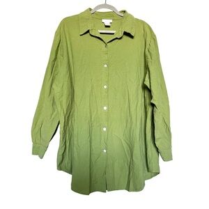 Soft Surroundings NWOT Textured 100% Cotton Button Down Shirt Green Size 2X