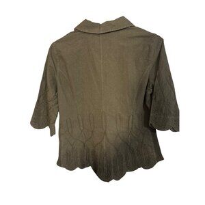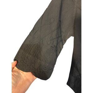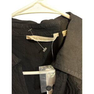 Soft Surroundings NWT Petite Small Embroidered Black Button-Up Blouse With Scall