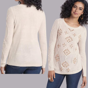 Soft Surroundings Natural Isra Bead Embellished Sparkle Crew Neck Sweater XS NWT