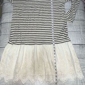 Soft Surroundings Nautical Left Bank Drop Waist Striped Dress Lace Trim sz S
