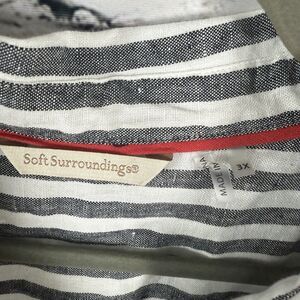 Soft Surroundings Nautique Stripe Linen Shift Dress Women's Plus 3X Black White.
