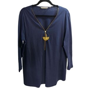 Navy Blue Long Sleeve Top with Gold Tassel Boho Zipper Accent Never worn, in perfect condition
