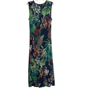 Soft Surroundings Navy Paradise Island Tropical Floral Maxi Dress