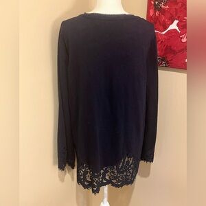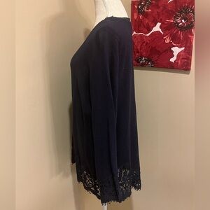 Soft Surroundings Navy Pull Over Wool Blend Lace Hem Sweater, size XL