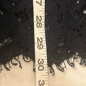 SOFT SURROUNDINGS SWEATER TUNIC. Tag Size XL, may fit smaller, depending on desired fit, please check measurements below. Ultra soft cotton, cashmere, wool, viscose, nylon blend with nylon/viscose scalloped crocheted lace along the hem and belled sleeves. Raw edged trim along the neck. Gentle A-line silhouette, tunic length.