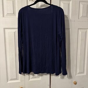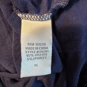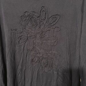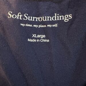 If you know Soft Surroundings this lives up to its name. SO SOFT - Navy Rose Fabric Applique Tunic - Size XL. This is in excellent preloved condition. This is 95% Viscose and 5% Spandex.
